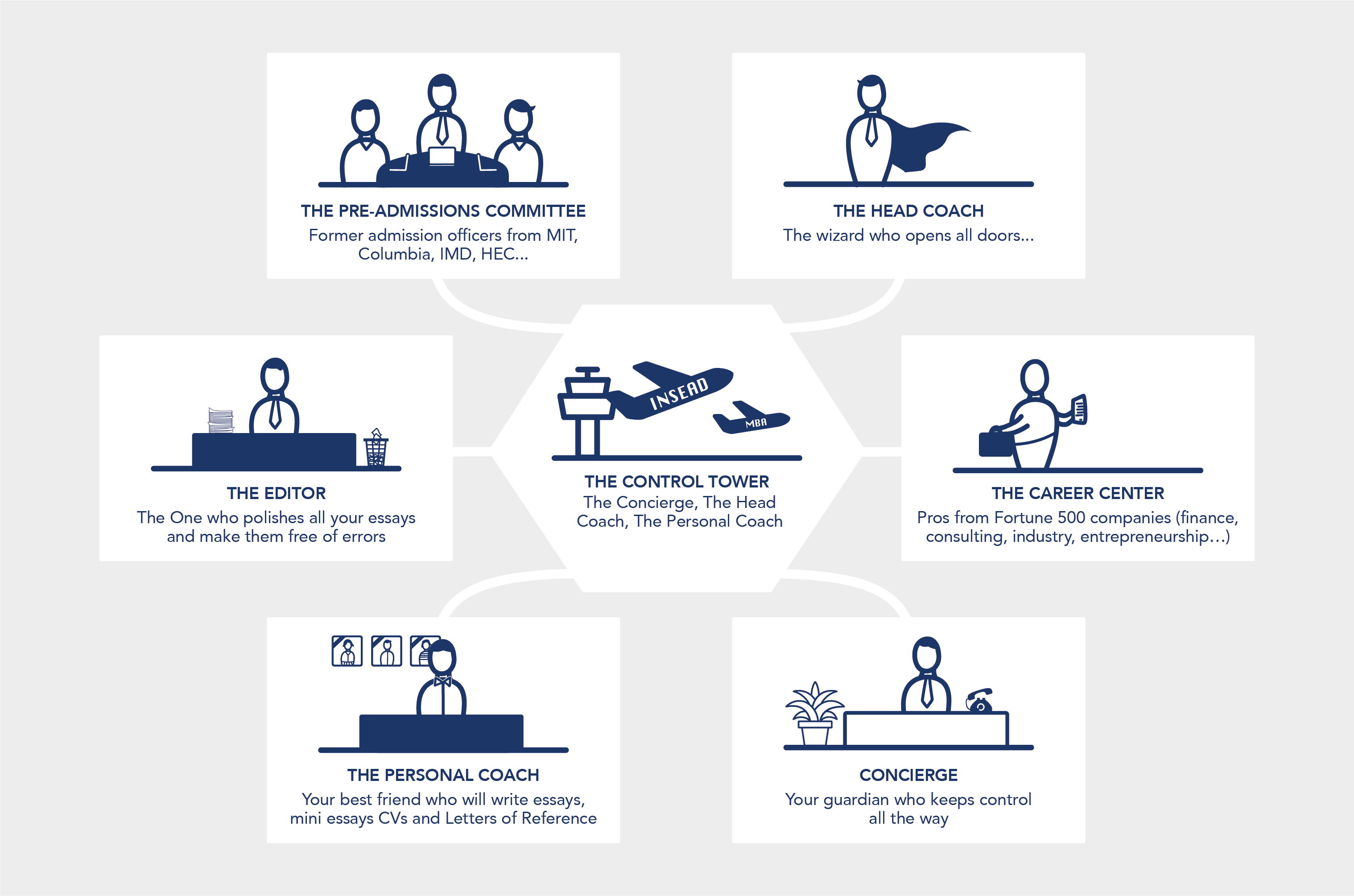 A committee of former admission officers from top business schools (Columbia, MIT, HEC, IMD, ESSEC…), their job is to give a fair assessment of your application and give their feedback to the Control Tower who will rectify and amend your application in case they notice a weakness in your application.